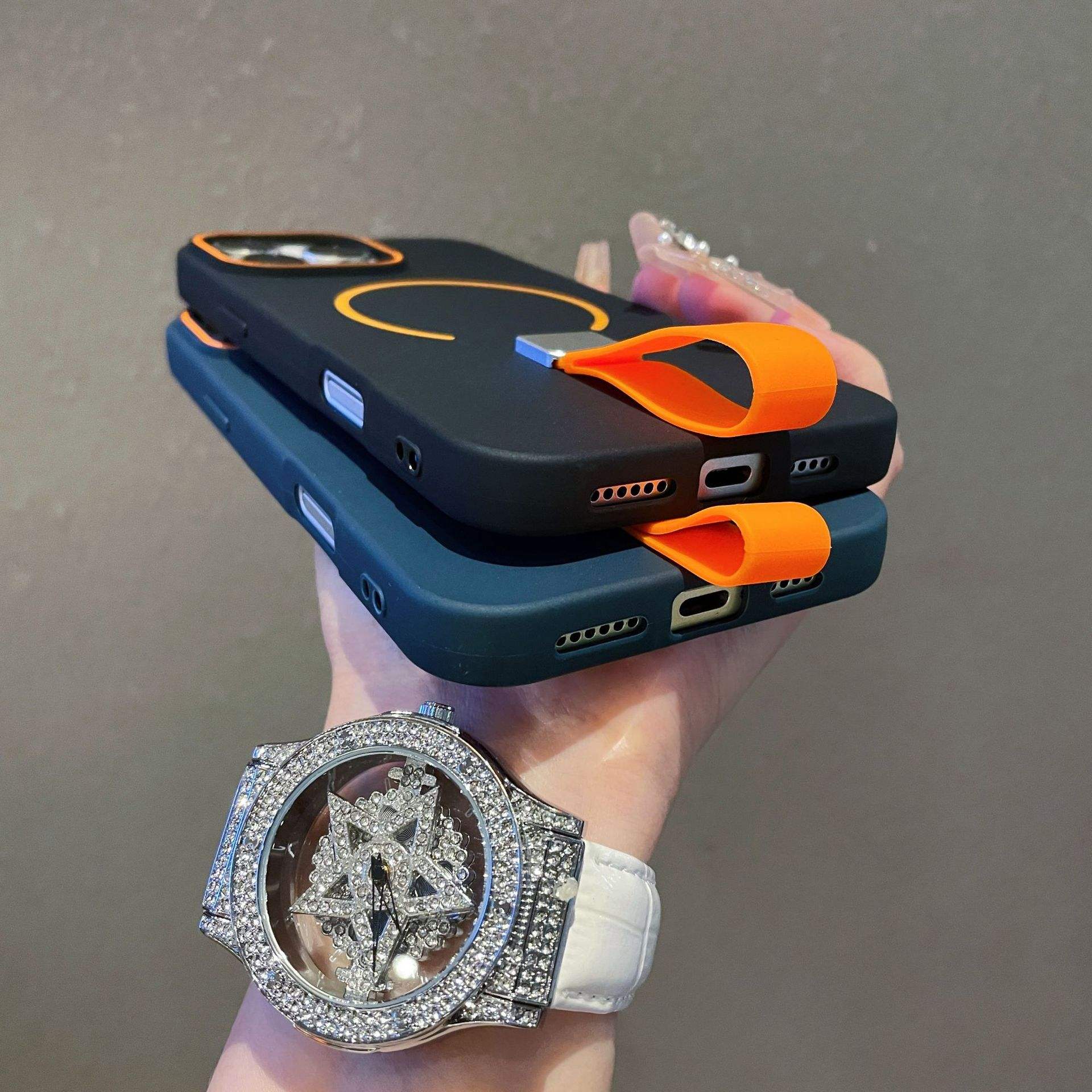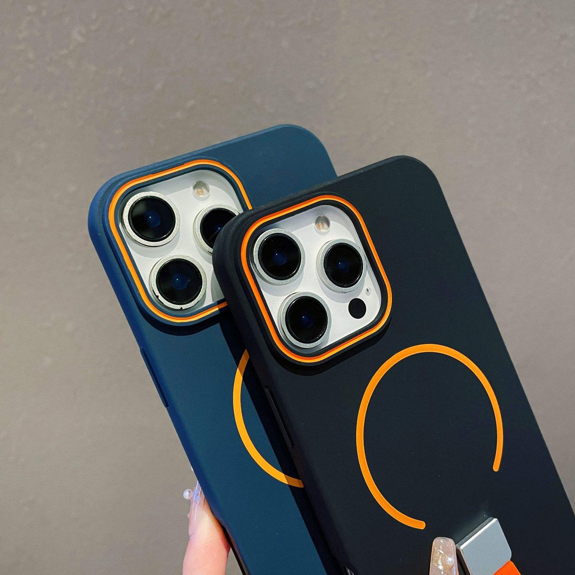 New Fashionable Phone case Comes with Silicone Stand Magnetic Phone case for iPhone 15 Pro Max Anti-fingerprint Protective case